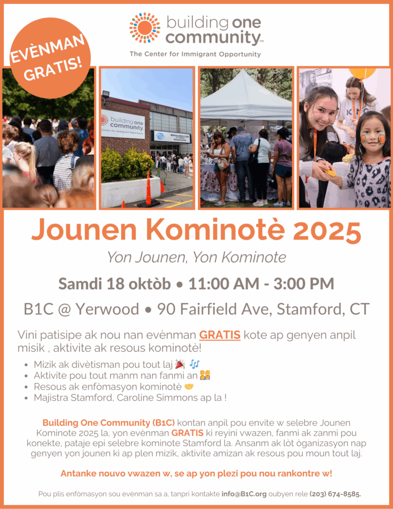 Building One Community (B1C) invites you to celebrate Community Day 2025: a FREE event that brings neighbors, families, and friends together to connect, share, and celebrate the community that makes Stamford strong.